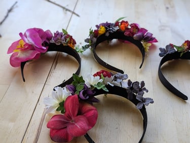 Each one-of-a-kind piece is lovingly crafted with vibrant colors and playful details—perfect for weddings, bat or bar mitzvahs, birthdays, Halloween, Día de los Muertos, Purim, or simply to brighten any day. Whether you're dressing up or expressing your unique spirit, these headpieces add a joyful, artistic touch to any occasion.