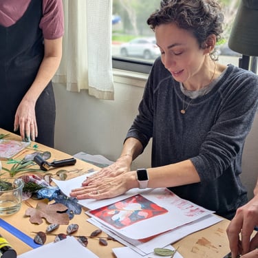 A hands-on gelli printing workshop for ages 11 and up, where participants explore layers, textures, and happy accidents using a soft, reusable gelli plate. Working with paint, natural elements, and everyday materials, we’ll experiment with color and image-making in an intuitive, playful way. No experience needed.